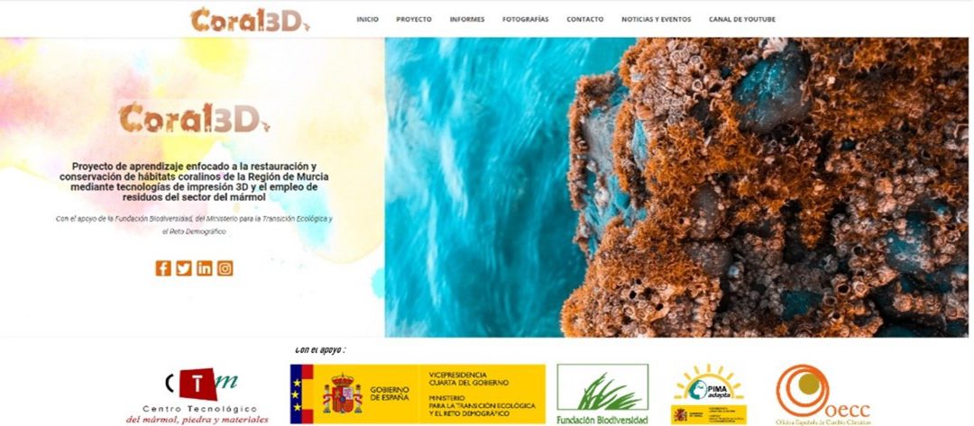 El CTM ha habilitado la página web del proyecto de aprendizaje CORAL3D (https://coral3d.es/), enfocado a la restauración y conservación de hábitats coralinos de la Región de Murcia mediante la construcción de un arrecife artificial, para el cual se empleará residuos del sector del mármol.